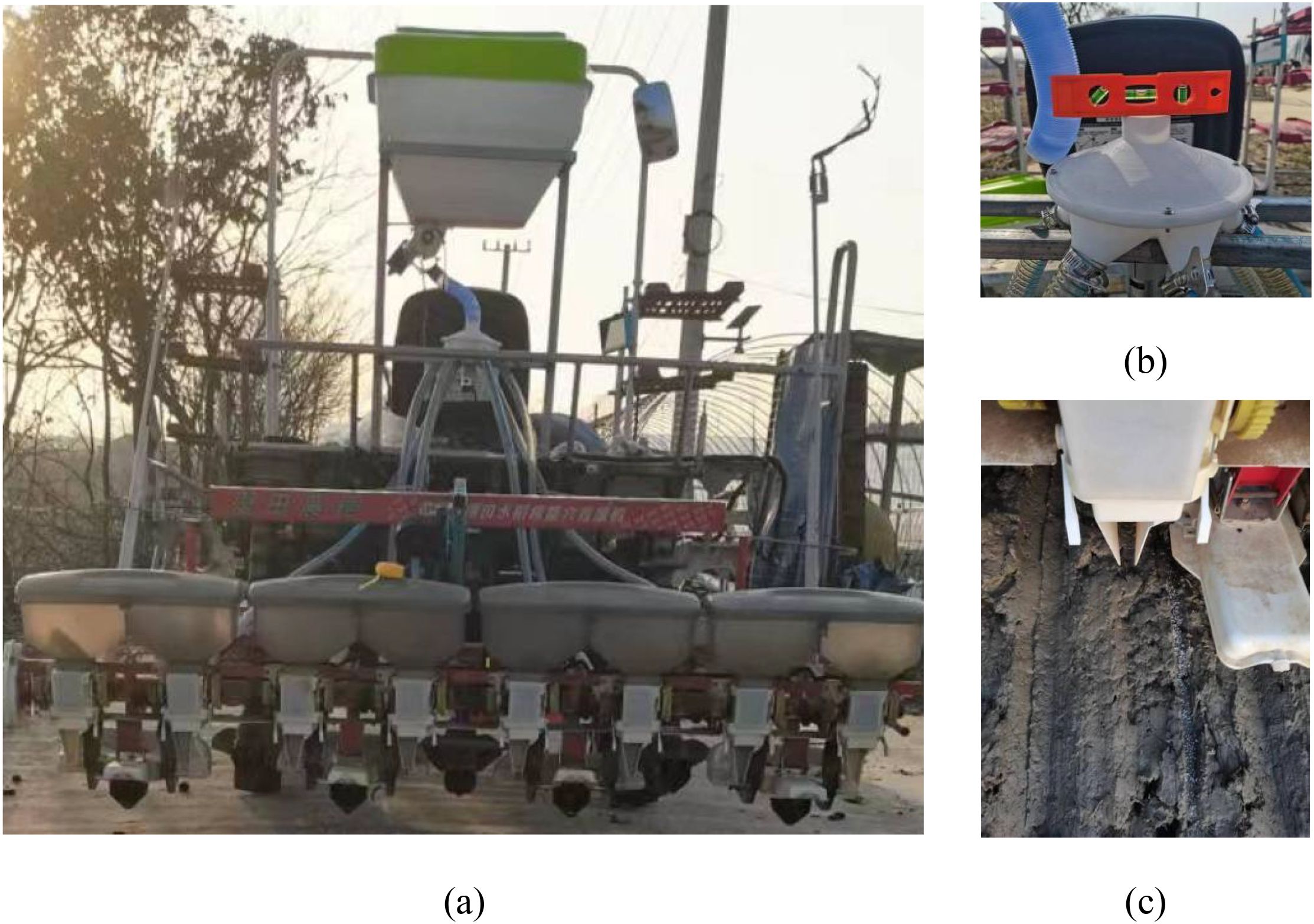 Rice is the most important food crop in China, accounting for approximately 30% of the global total rice production. However, inappropriate fertilizer application in paddy cultivation causes water pollution and reduces economic efficiency (Su et al., 2025). The technology of synchronizing mechanical transplanting with side-deep fertilization is a major green technology. It involves placing slow-release fertilizer 3–5 cm to the side and 4–5 cm deep relative to the seedling roots. This placement improves nitrogen use efficiency (NUE), reduces environmental pollution, and can lead to savings of 10-20% in fertilizer use without yield loss (Feng et al., 2025; Guo et al., 2025; Yin et al., 2022). Therefore, rice side-deep fertilization technology is key to balancing the pollution of paddy fields while increasing grain yield and income (Shao et al., 2025). Despite its advantages, the integration of side-deep fertilization devices into paddy field planting machinery is complex. Paddy fields exhibit limited soil-carrying capacity and high forward resistance, necessitating a reduction in the weight of paddy seedlings or rice transplanters to allocate sufficient horsepower for trenching resistance in side-deep fertilization.