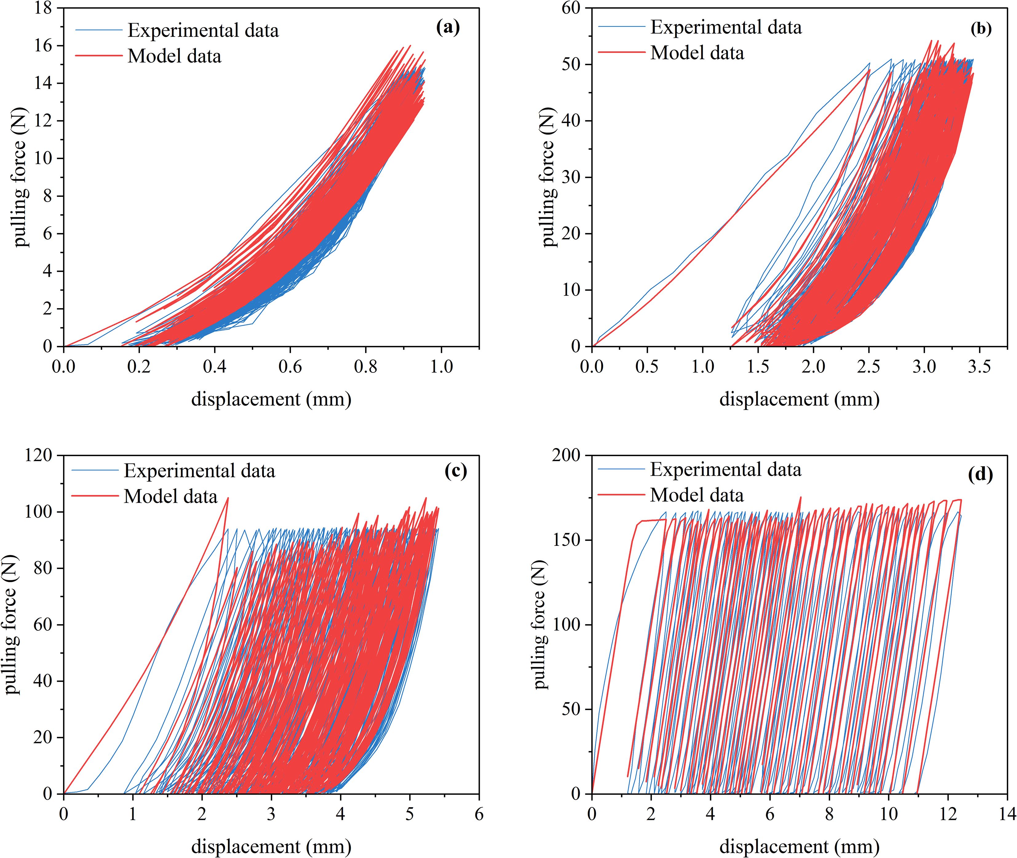 Figure 10. Model fitting results (a) 25% load amplitude (b) 50% load amplitude (c) Roots not pulled out under 75% load amplitude (d) Roots pulled out under 75% load amplitude.