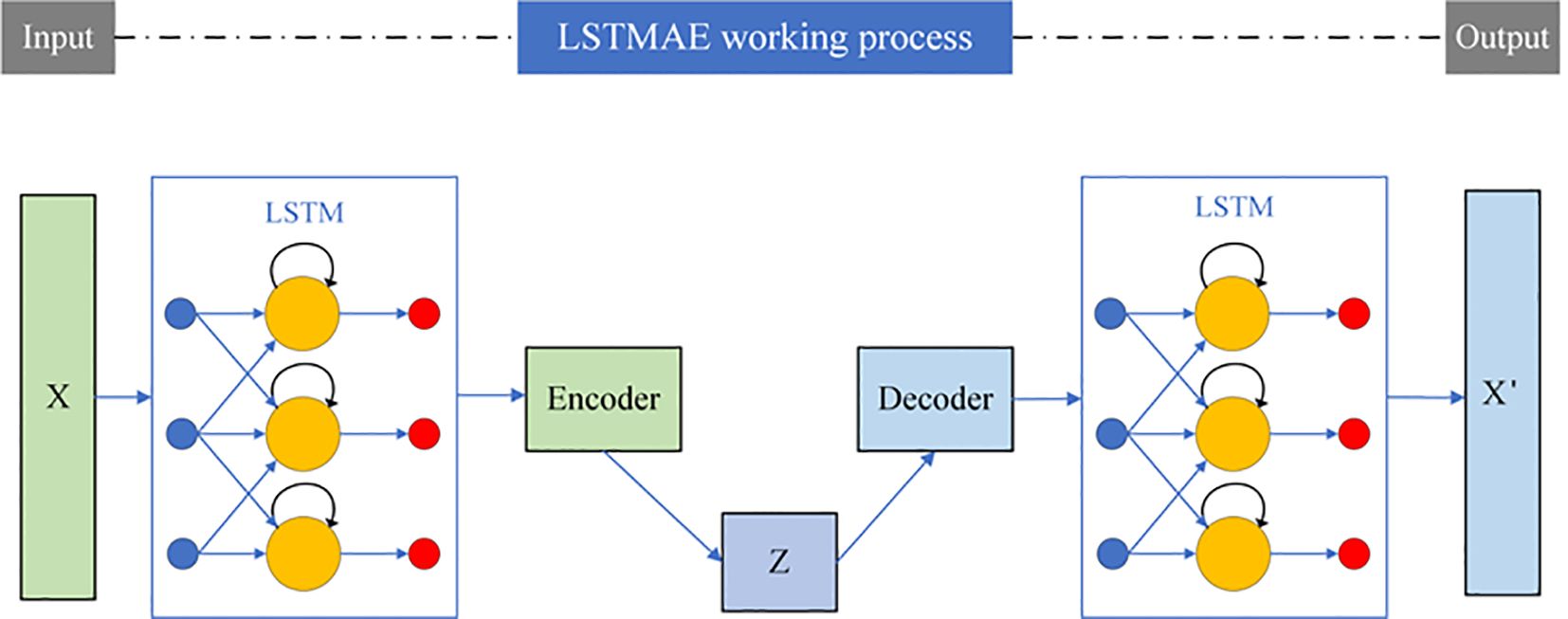 The primary purpose of an encoder is to obtain input data, pass it through a model for reconstruction, and retain a small number of the most important features in the re-constructed input data. The experiments in this paper involve the storage of tomatoes, and two LSTM layers are used before and after the encoding-decoding module of the autoencoder to capture temporal dependencies. Therefore, feature extraction is con-ducted using LSTMAE, and the definition of the LSTMAE model is illustrated in Figure 4.