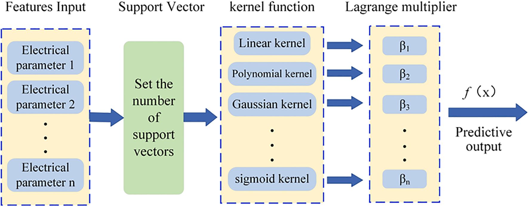 Here, denotes the Lagrange multiplie, represents the kernel function and b corresponds to the bias term.
