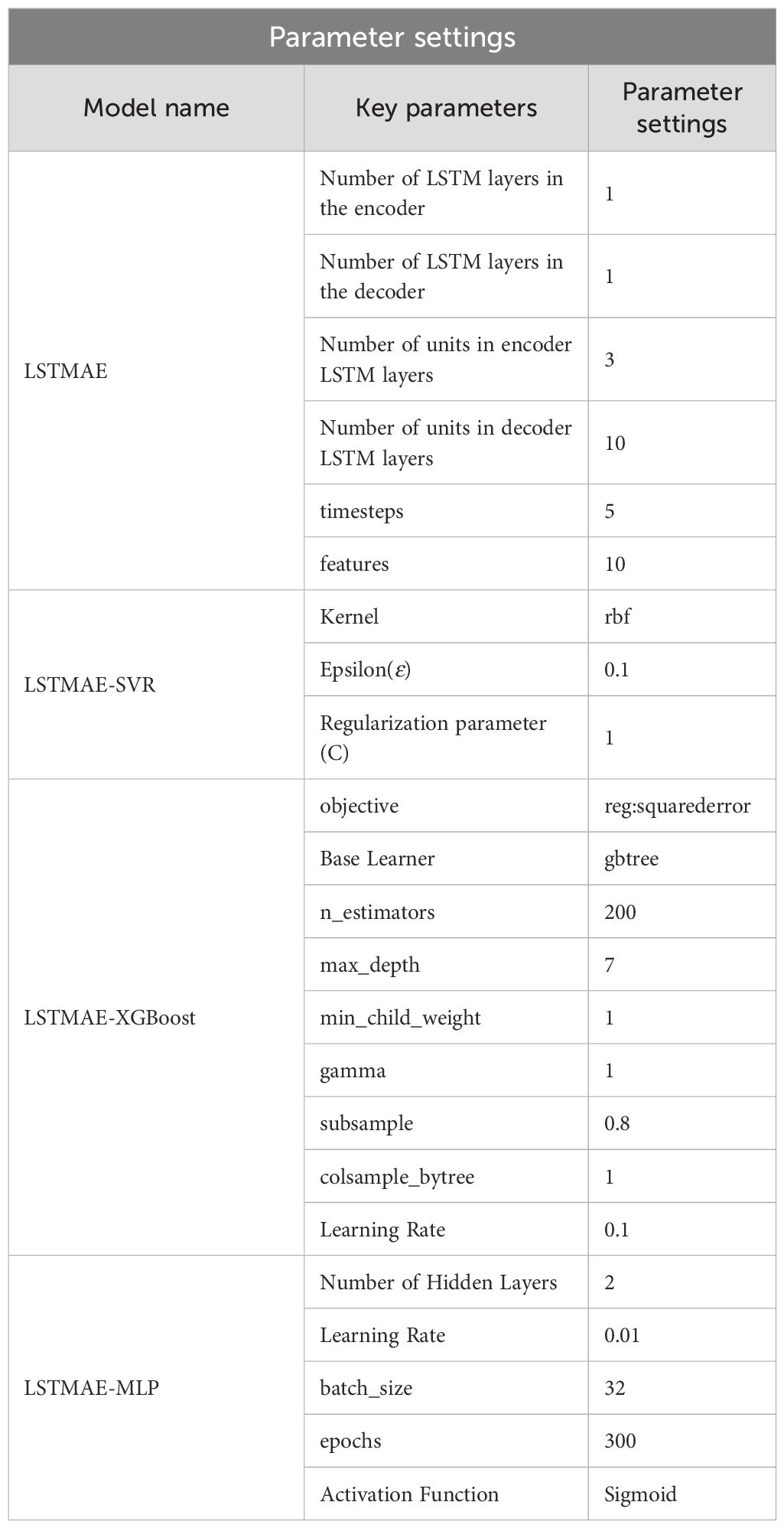 Based on previous research, this study is the first to systematically apply LSTMAE for feature extraction from tomato electrical parameters, providing a novel and automated feature engineering solution for predicting fruit quality indicators based on electrical parameters. Compared to traditional machine learning models, deep learning adopts an end-to-end learning approach, mapping raw data directly to the final results, thereby simplifying the machine learning process (Taye, 2023). This learning method minimizes manual intervention and enhances the model’s efficiency and accuracy. This model is of significant importance for improving the efficiency of tomato quality detection, reducing costs, and promoting agricultural intelligence.