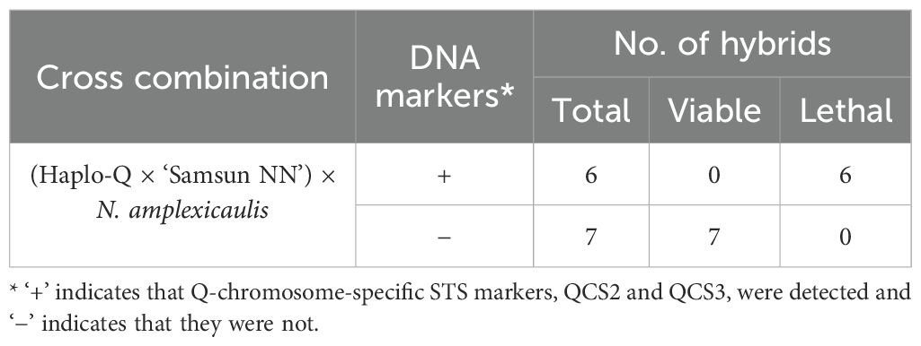 Table 3. Relationship between the Q chromosome and hybrid lethality observed in the cross between N. tabacum and N. amplexicaulis JT.