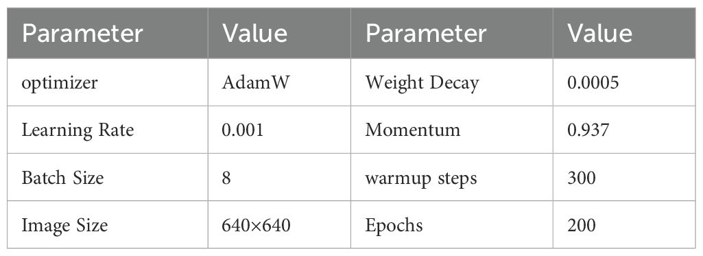 The experimental hardware environment is configured with Intel I7–13700 CPU; 32GB RAM; GEFORCE RTX3070 GPU. The operating system is Windows10 professional edition, the programming language is Python 3.8, and the acceleration environment is CUDA 11.1, CUDNN 8.2.0. The training parameters are shown in Table 2.