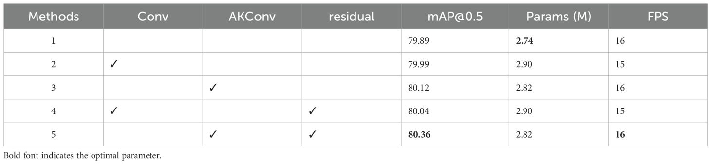 Zhang, X., Song, Y., Song, T., Yang, D., Ye, Y., Zhou, J., et al. (2023). AKConv: Convolutional kernel with arbitrary sampled shapes and arbitrary number of parameters. arXiv preprint arXiv:2311.11587, 2–10. doi: 10.48550/arXiv.2311.11587