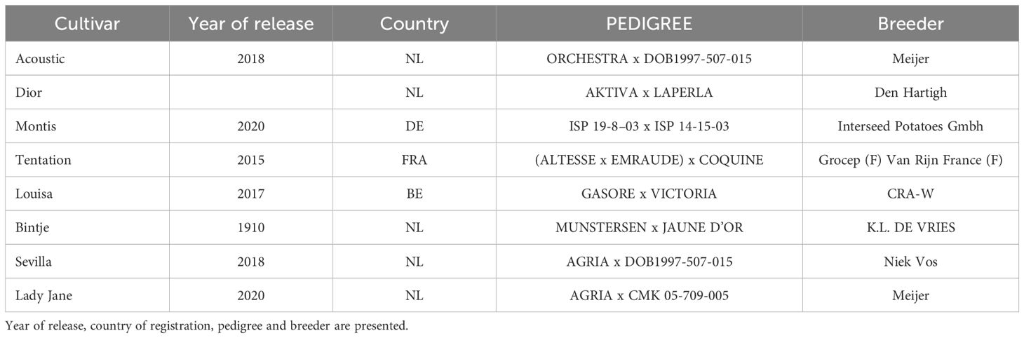 The study used 8 potato (Solanum tuberosum L) genotypes, all commercial cultivars (Table 1). They were selected for their different range of productivity and maturity.