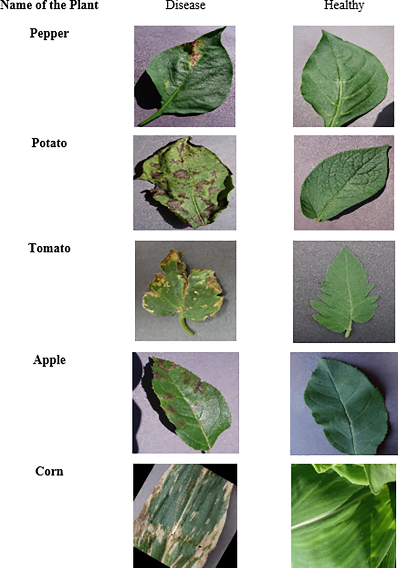 The reason why this study is conducted on the Plant Village Dataset is that it is a well-known resource that could be used in the field of plant disease classification. The data consists of 54,305 images as can be seen in Figure 2, in 38 different classes representing different plants and their condition (healthy or diseased). The data set consists of 17 different plant species of varied disease pattern as shown in Figure 3 like Apple with Apple Scab, and Apple Cedar Rust diseases, and Tomatoes with Tomato Late blight and Tomato Mosaic Virus. Presentation of images over these classes permits an extensive analysis and training of the presented model.