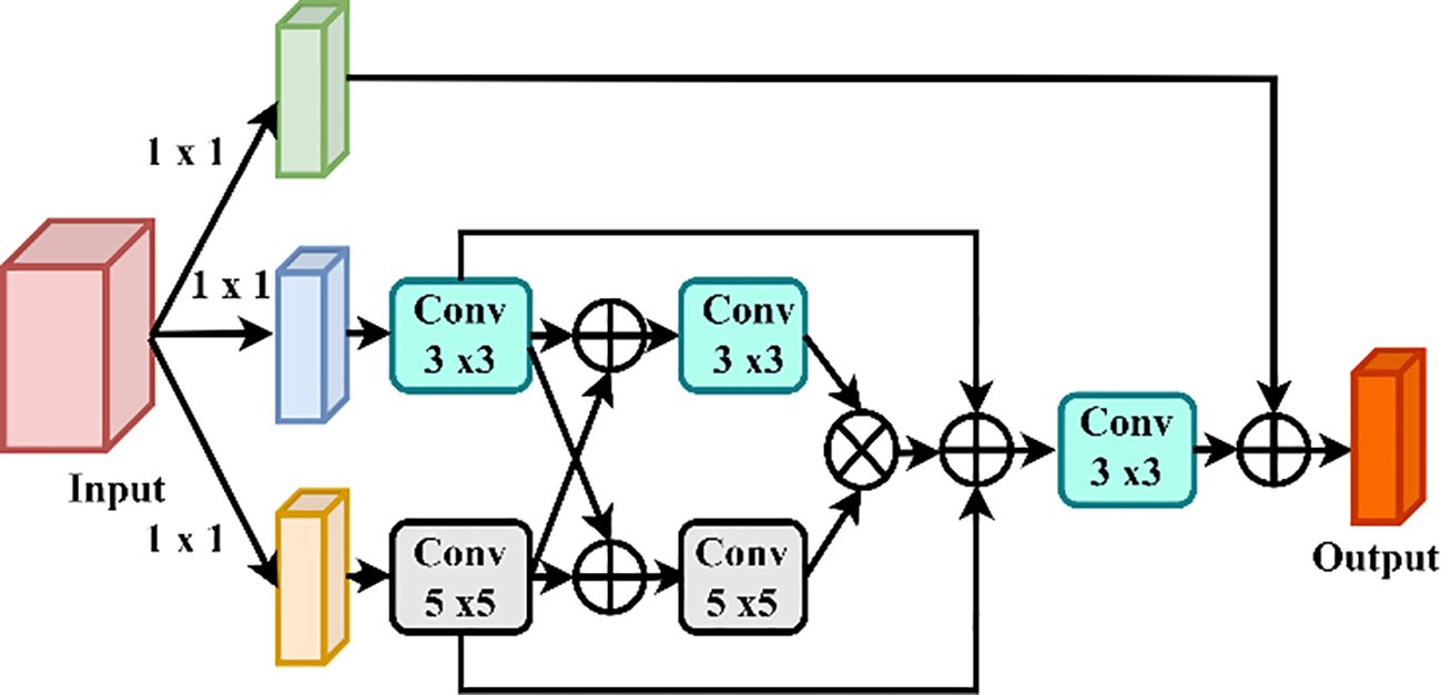 Where denotes feature maps at differing scales and are learnable scaling coefficients which determines the contribution of a given scale. N represents the amount of feature scales to consider. This process enhances the ability of the approach in acquiring the small scale patterns of lesion and large scale of the disease spread and this provides enrichment in accuracy in classification and segmentation of lessons.