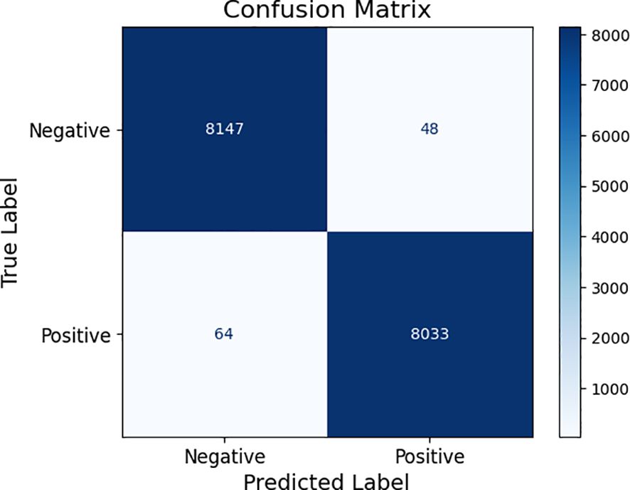 The confusion matrix is the prediction that is broken down into True Positive (TP), False Positive (FP), False Negative (FN) and True Negative (TN). True Positive (TP) is an occurrence in which the model properly detects and validates the existence of a positive condition and is in harmony with the real positive status of the instance concerned. In its turn, FP is defined by the false positive identification, i.e. classifying a negative case as positive. At the other end of the scale there is a FN, which occurs when the corrective diagnosis is not made because the incorrect feedback is produced, the true condition is absent. Finally, a TN represents the successful prognostication of a negative case, which is associated with the actual lack of the examined condition. These factors form a fundamental part in defining the effectiveness and accuracy of predictive models in various facets of study.