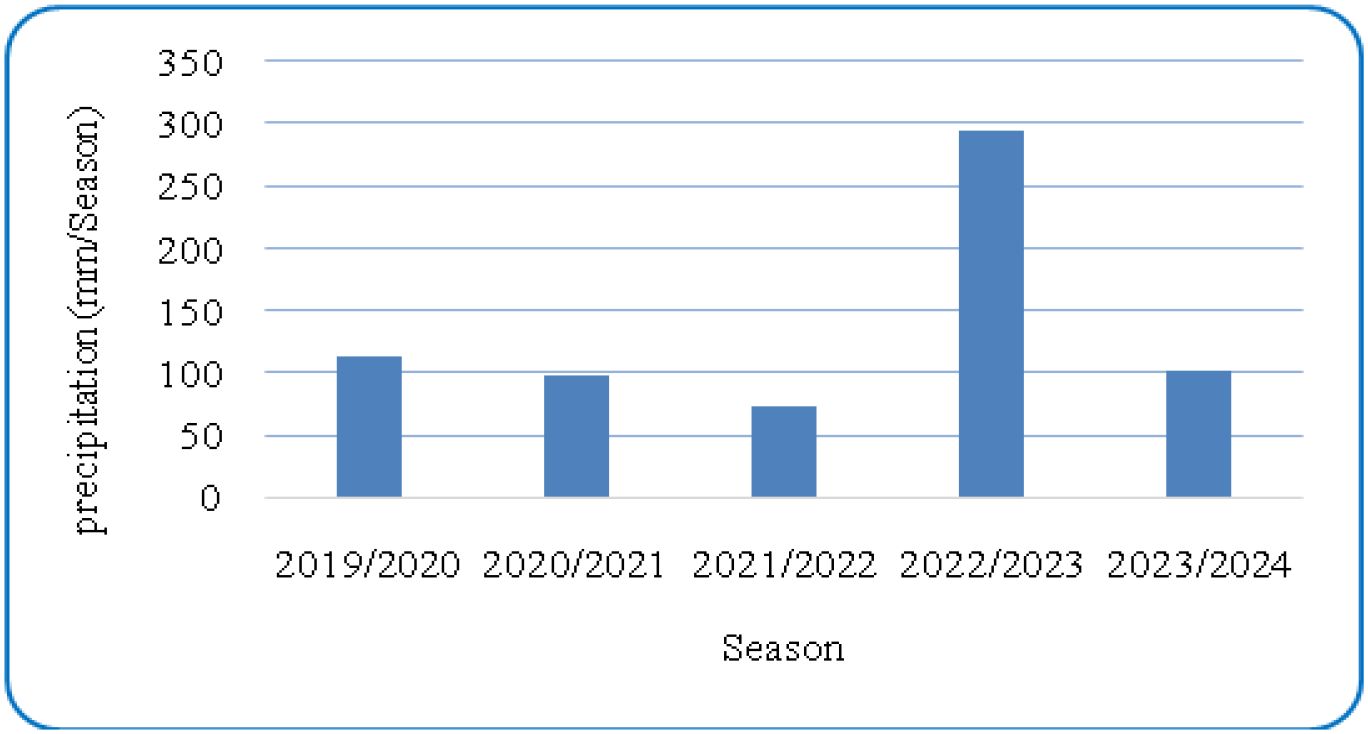 Figures 1 and 2 present the meteorological data for the study period (2019–2023), including maximum and minimum temperatures and total rainfall. A summary of environmental conditions across different years is provided in Table 2. Soil physical and chemical properties of the experimental site are detailed in Table 3.
