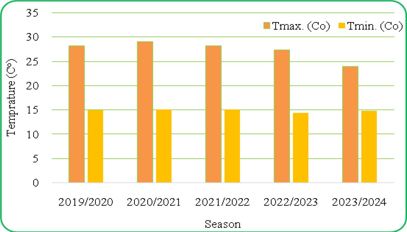 Figure 2. Average of the maximum and minimum temperature from 2019 to 2023 in the experimental field consistently across environments.