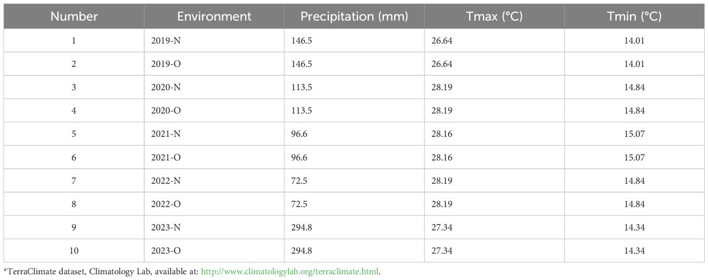 Table 2. Environmental conditions* across different years and fertilizations (organic (O) and inorganic (N) based on precipitation and temperature variables.