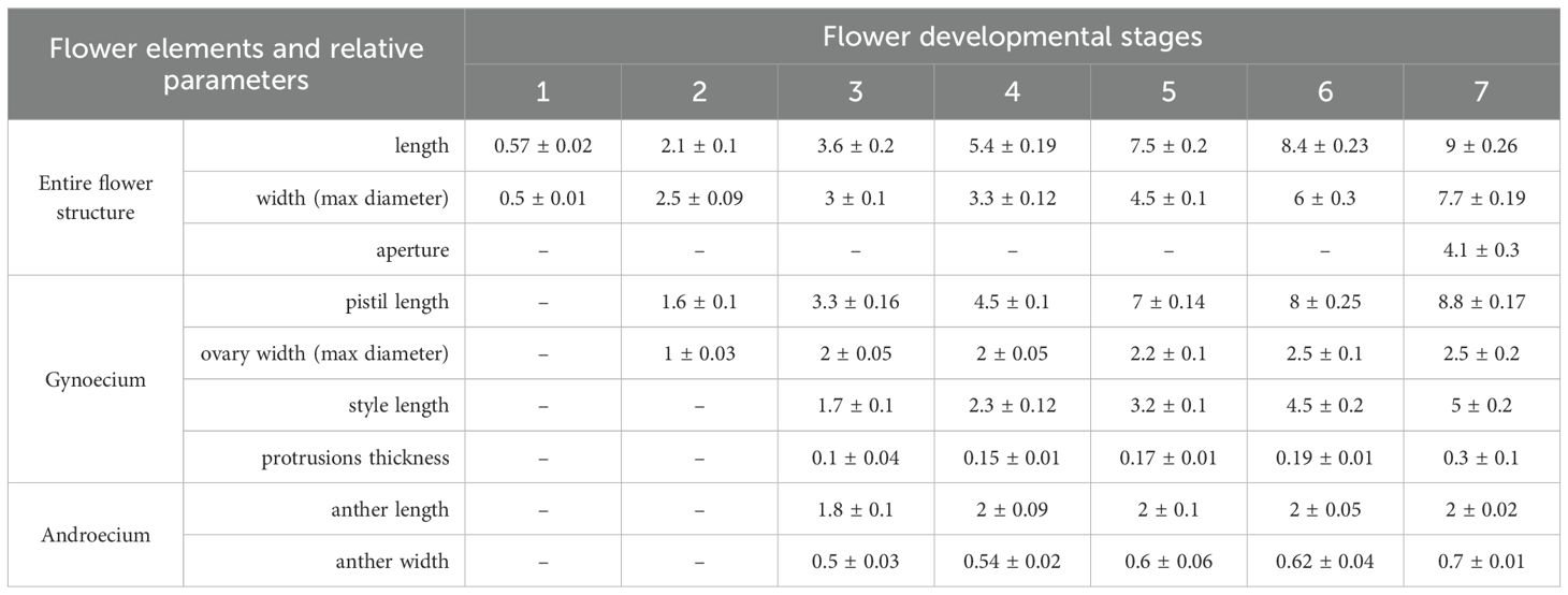 Table 1. Morphometric data from A. unedo flowers. Mean value of dimension (in mm) for the flower elements collected at each stage and related standard error are shown.