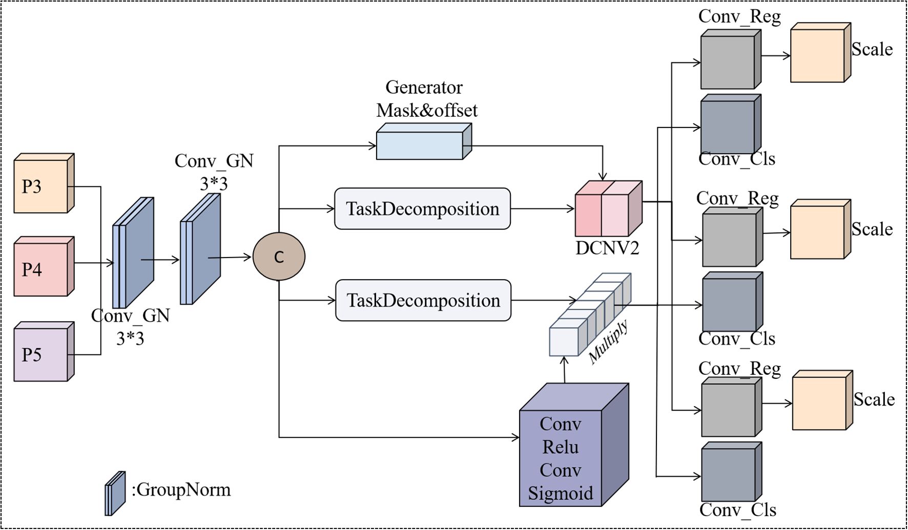 Here, Atask represents the channel attention weights, enabling selective emphasis on task-relevant features. For the regression branch, IntegraDet employs Deformable Convolution v2 to adaptively adjust receptive fields (Equation 2):