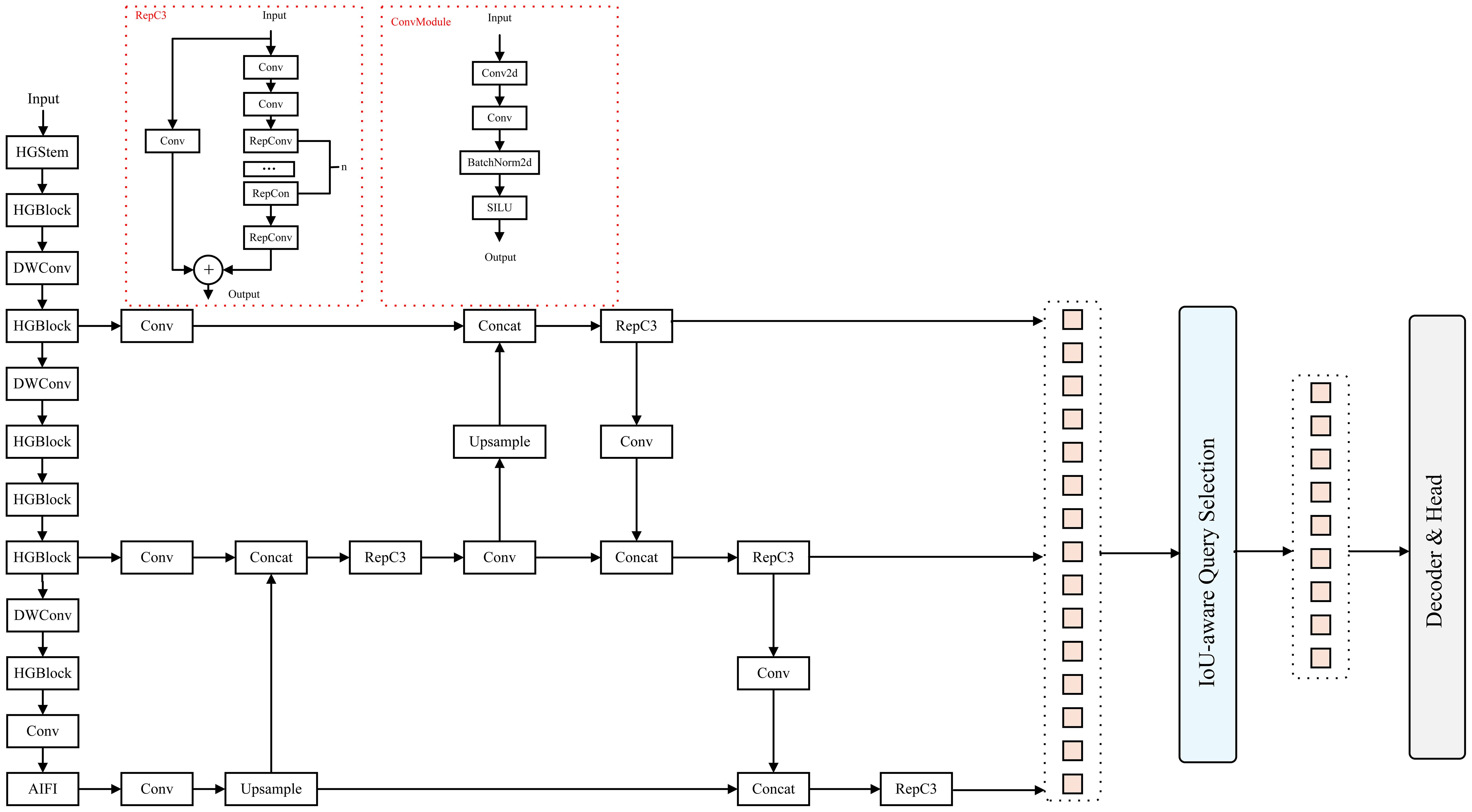 The CSFF (Cross-Scale Feature Fusion) module is designed to integrate multi-scale features, enhancing the model’s robustness to scale variations and improving small object detection. The structure is depicted in Figure 6. It builds upon and optimizes traditional cross-scale fusion modules through the incorporation of fusion blocks that integrate adjacent scale features. Each fusion block includes two 1×1 convolutions for channel adjustment, followed by N Rep Blocks to perform feature fusion, and computes the final fused feature through element-wise addition (Ding et al., 2021). This facilitates effective integration of multi-scale features.