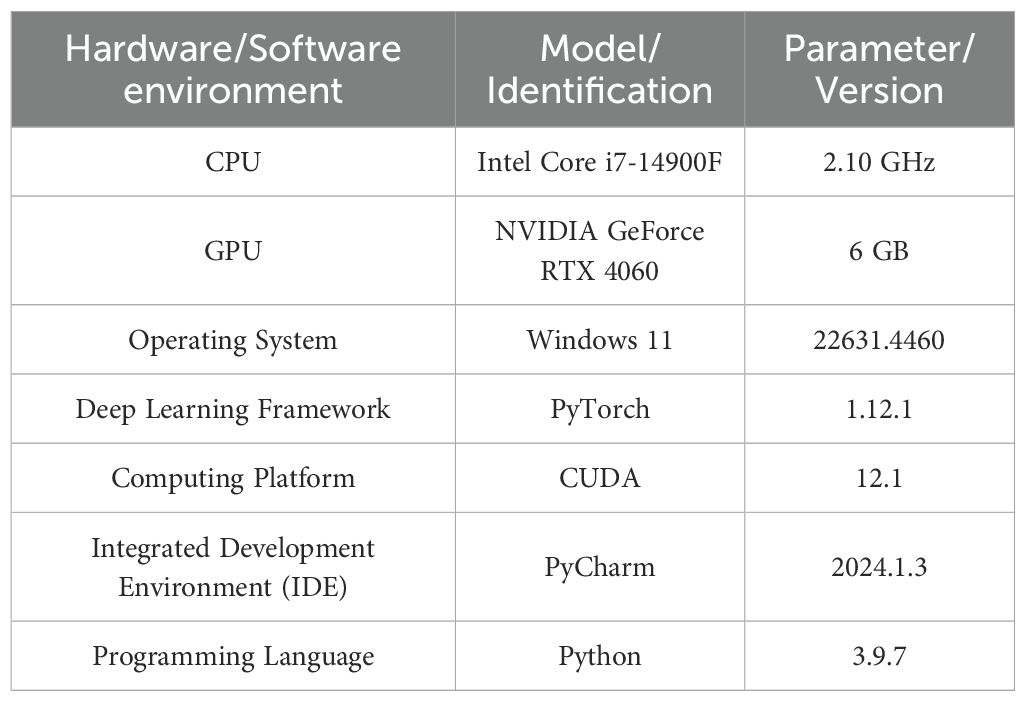 In this study, the software and hardware environments and their corresponding parameters are summarized in Table 2.