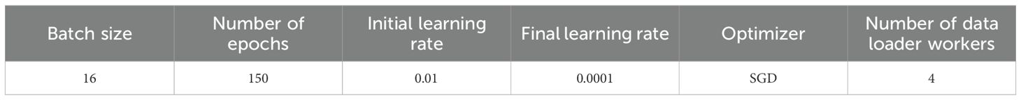 The training parameters used in this study are listed in Table 3.