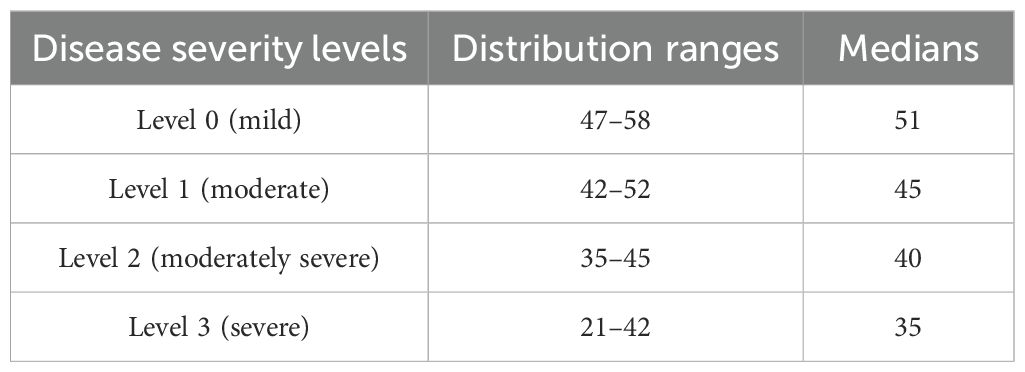 Table 3. Distribution ranges and medians of SPAD values across different disease severity levels.