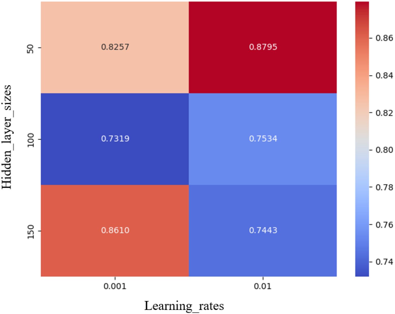 During model configuration, particular attention was given to the interaction between hidden layer dimensionality and learning rate (Nikzad et al., 2025). The hidden layer structure governs the model’s capacity to represent complex spectral patterns, while the learning rate regulates the convergence behavior during training. Proper coordination between these two parameters ensures stable gradient propagation while preventing either underfitting due to insufficient model expressivity or overfitting caused by excessive parameterization, ultimately leading to optimized generalization performance (Wan et al., 2024).