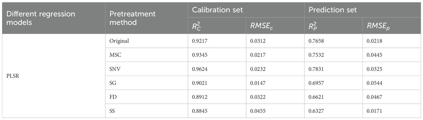 Table 2. Comparative analysis of different pretreatment methods and the original spectral PLSR model.