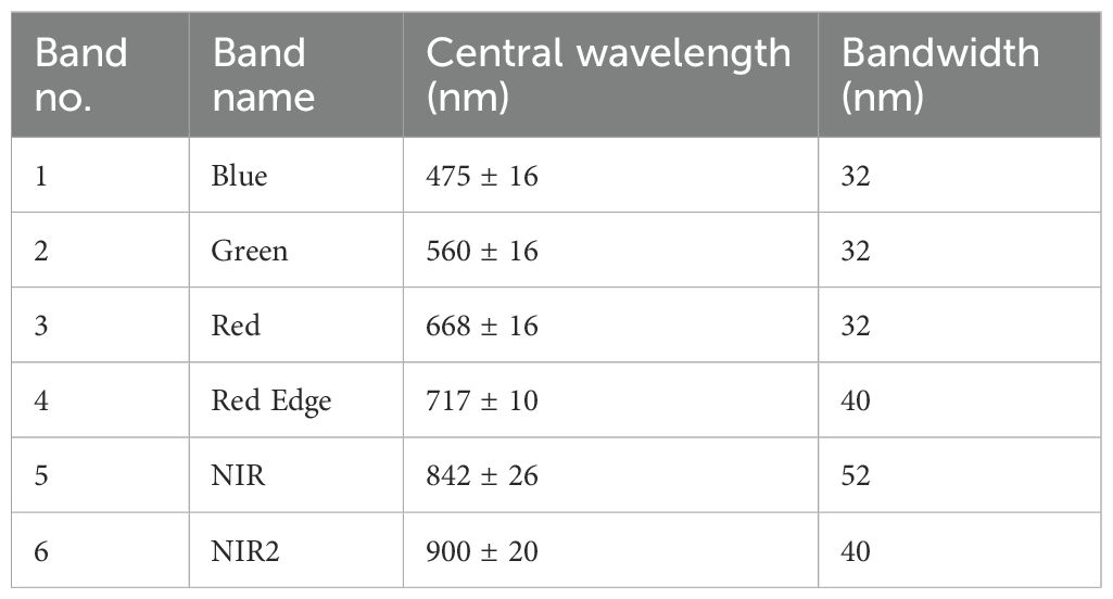 The adoption of remote sensing technology presents a more effective approach to deriving crop LAI from spectral data (Sadeh et al., 2021; Dhakar et al., 2021). Recent advances have demonstrated that UAV-based multispectral imaging can substantially improve the accuracy of crop LAI and chlorophyll estimation, benefiting from its high spatial resolution and spectral sensitivity (Parida et al., 2024). This technology significantly mitigates the constraints of traditional measurement methods, allowing researchers to economically and swiftly gather extensive crop canopy data (Furbank and Tester, 2011). Nonetheless, the temporal and spatial resolutions of most satellite data do not meet the rigorous demands of precision agriculture. In this context, Unmanned Aerial Vehicle (UAV) technology plays a pivotal role by facilitating high-throughput phenotypic analysis (Chapman et al., 2018). The integration of UAV-based LiDAR and multispectral imaging has proven effective for high-throughput phenotyping of dry bean, enabling accurate, non-destructive estimation of plant height, lodging, and seed yield, highlighting the potential of UAV-based phenotyping in precision agriculture and crop breeding programs (Panigrahi et al., 2025).Offering lower altitudes and capturing data with higher spatial resolution, UAVs provide more detailed information compared to satellite data (Araus and Cairns, 2014). Combining UAV RGB and multispectral indices enables accurate field-scale monitoring of nitrogen status and yield prediction (Chatraei Azizabadi et al., 2025).In addition, multi-source UAV data fusion frameworks have been developed for real-time LAI estimation, highlighting the importance of integrating structural and spectral information (Du et al., 2024).