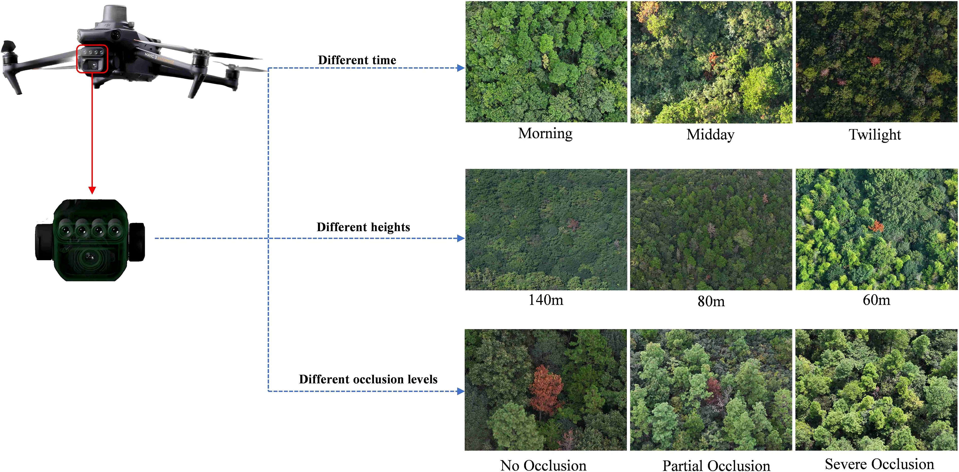 Traditional detection methods primarily rely on manual on-site inspections. However, due to environmental factors such as rugged forest roads and complex mountainous terrain, conducting comprehensive inspections is extremely challenging. Manual patrols not only involve high labor intensity and low work efficiency but also fail to meet the requirements for efficient and precise detection and epidemic prevention in large-scale forest areas. Therefore, combining drone imagery with deep learning to achieve automatic identification has become a current research focus. Drones offer advantages such as high efficiency, low cost, and wide coverage, enabling the rapid acquisition of high-resolution images over large areas, thereby providing strong support for early detection. Additionally, the rapid development of computer vision and deep learning has also provided robust support for disease identification.