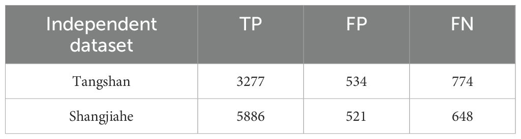 Additionally, Table 7 provides a systematic statistical analysis of detection results on the two datasets. The Tangshan dataset contains a total of 4,051 early-stage infection labels, of which LE-PWDNet successfully detected 3,277 under zero-shot conditions, with 534 false detections and 774 misses. The Shangjiahe dataset contains 6,443 early-stage infection labels, among which 5,886 were correctly detected, with 521 false detections and 648 misses. Overall, the model exhibited strong detection capability in complex cross-regional scenarios, with most false detections concentrated on healthy pine trees or other broadleaf tree targets sharing similar texture patterns with early-stage symptoms. Misses primarily occurred in instances with poor lighting, extremely subtle symptoms, or severe occlusion by other vegetation, indicating that under such conditions, feature signals could benefit from more refined local feature enhancement strategies. This statistical analysis not only reveals the model’s detection characteristics under different interference factors but also provides targeted insights for improving future cross-regional detection performance.