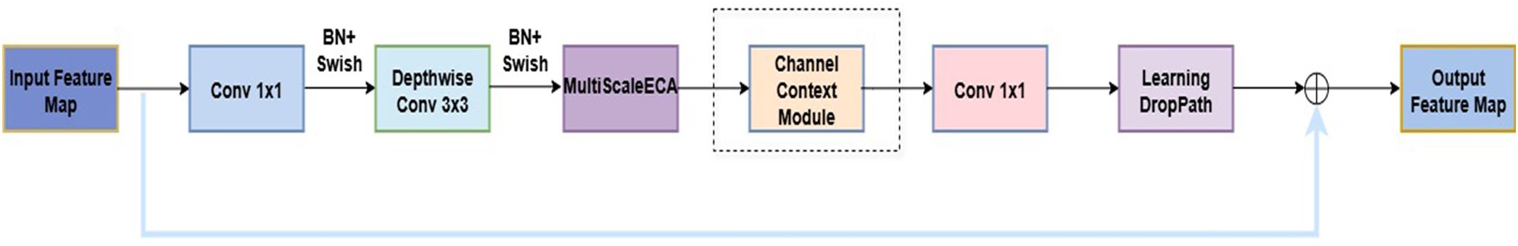 3. A Learnable DropPath mechanism is applied to MBConv residual connections, a dynamic weight fusion mechanism that adaptively adjusts the importance of features across scales.