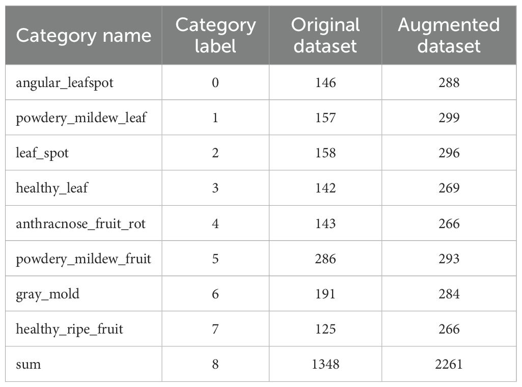 First, raw images were first carefully screened to remove non-compliant samples, including those with abnormal lighting, motion blur, or defocus, and visual interference such as occlusions or reflections. Following this initial cleaning, images were labeled based on authoritative references, such as the Strawberry Pest and Disease Diagnosis and Control Atlas, and with guidance from strawberry experts to ensure accurate category assignment. All labeled results were then cross-checked by two experts, with disputed images either re-evaluated or removed, thereby guaranteeing both the consistency and reliability of the annotations. This process resulted in 1,348 high-quality images that preserved the diversity and representativeness of the dataset.