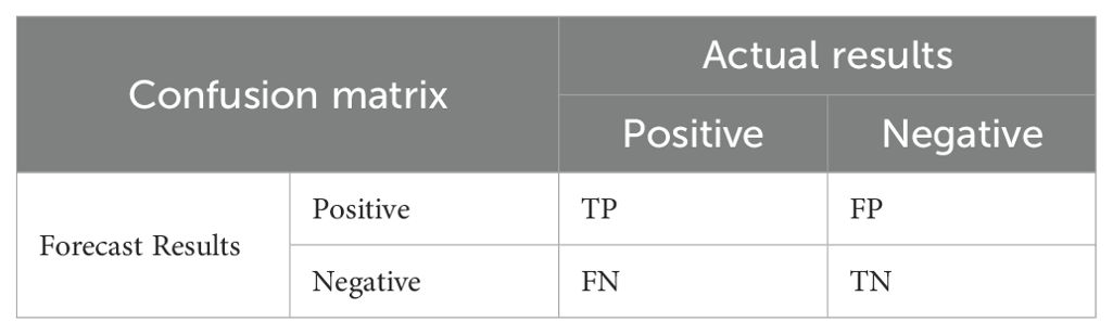 In supervised learning, confusion matrices serve as a fundamental tool for evaluating classification model performance. The matrix organizes predictions against ground truth labels: columns correspond to predicted classes, while rows represent actual classes. For a binary classification task, the matrix consists of four key components. True Positives (TP): Cases where both the actual and predicted labels are positive, False Positives (FP): Negative instances incorrectly predicted as positive, False Negatives (FN): Positive instances misclassified as negative, True Negatives (TN): Correctly identified negative cases. The structure of a binary confusion matrix is illustrated in Table 1.