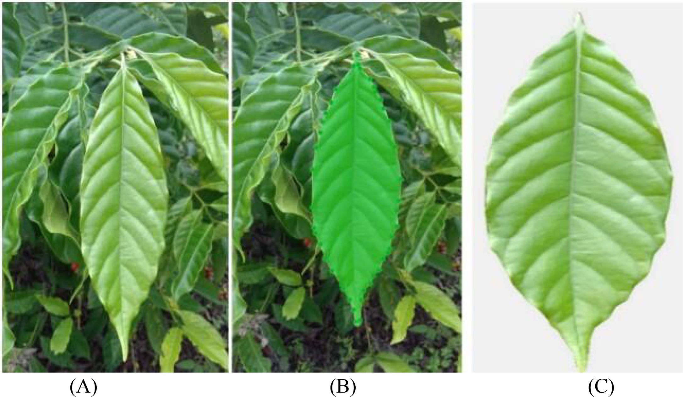 Since the coffee images were taken on-site with complex backgrounds (including branches, soil, adjacent leaves, etc.), this could cause noise interference for the feature extraction of subsequent image generation models. To enhance the semantic consistency of the generated images and the integrity of lesion structures, this study introduces instance segmentation technology to accurately extract target leaves from coffee images.
