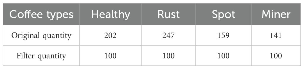 Coffee leaf images were sourced from two major growing areas: the Lujiang Town Coffee Plantation Base in Baoshan City, Yunnan Province, and the NanDaohe Baisha Slope Coffee Demonstration Base of Yunnan Agricultural University in Pu’er City. The study includes three main diseases: Coffee Rust, Coffee Spot Disease, and symptoms of damage by the Coffee Leaf Miner, with disease images shown in Figure 2. Images were taken directly in the field using smartphones under natural lighting conditions, focusing on capturing the leaves of plants in the field, resulting in a total of 749 valid images. During shooting, efforts were made to keep the lens perpendicular to the leaf surface and focus on clear diseased areas to minimize blurriness and obstruction. The final constructed coffee disease dataset is shown in Table 2.
