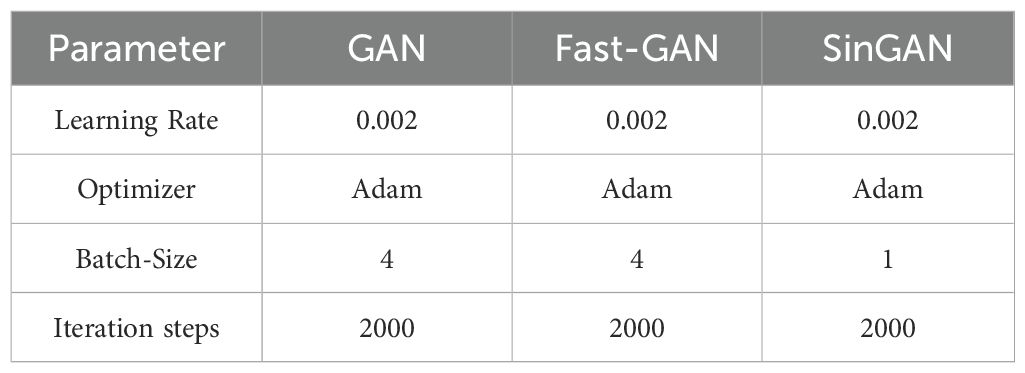 In the field of single-image generation, the SinGAN model proposed by Shaham et al. requires only a single natural image for training and achieves image generation from low to high resolution through a multi-scale pyramid structure, demonstrating excellent performance in preserving the original image’s structure and texture details, making it particularly suitable for few-shot agricultural image generation (Shaham et al., 2019). In recent years, research into improving SinGAN has advanced steadily: Nikankin et al. explored diffusion models based on single video frames for generating dynamic content (Nikankin et al., 2022); Hambarde et al. proposed an underwater GAN for single-image depth estimation (Hambarde et al., 2021); Ahmadkhani et al. introduced Topo-SinGAN, incorporating a differentiable topological loss to enhance structural consistency in generated images (Ahmadkhani and Shook, 2024); and Songwei et al. proposed Improved-SinGAN, effectively mitigating geographical bias in remote sensing image generation (Songwei et al., 2021).