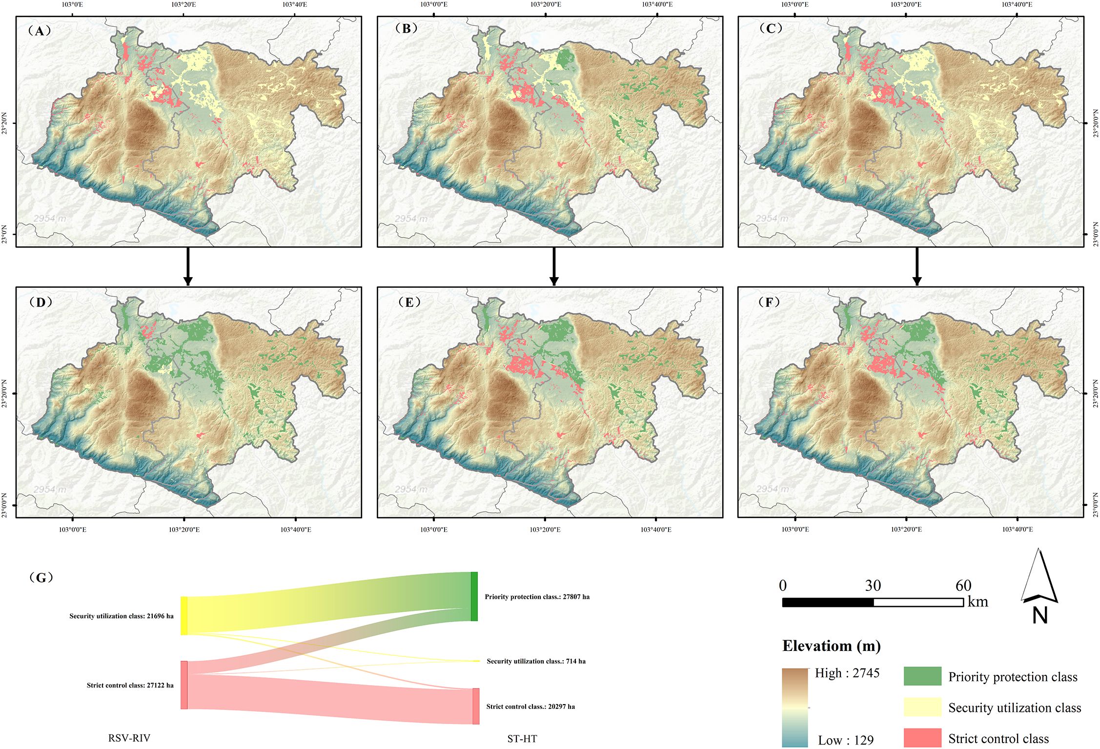 The practical implications of implementing the ST-HT system are transformative: a vast area of farmland can be reclassified from the “security utilization (Agricultural land may have the risk of soil pollution of edible agricultural products that do not meet the quality and safety standards. In principle, agrologic control, alternative planting and other safe use measures should be taken)” or “strict control (The risk of soil pollution in agricultural land is high, and it is difficult to reduce the risk of edible agricultural products not meeting the quality and safety standards through safe use measures. In principle, strict control measures such as banning the planting of edible agricultural products and returning farmland to forest should be taken)” category to the “priority protection (The pollution risk of agricultural land is low, and there is no need to take too many safety use measures)” category (Figure 8G), thereby liberating considerable economic and administrative resources previously earmarked for unnecessary remediation. At the same time, the agricultural and rural departments could use this threshold as a guidance for drawing the type map of soil cleanliness and apply it to agricultural production guidance. However, it must be acknowledged that the ST-HT system is region-specific, but the method can be extrapolated to other typical karst areas for validation and calibration to further evaluate the broad applicability of the framework. At the national level, based on the macro management and control, formulating unified standards is the internal requirement to facilitate unified management. However, region-specific research is also necessary, which can provide more accurate land management strategies and policy support for regions. This precision land management strategy is both ecologically and economically sustainable.