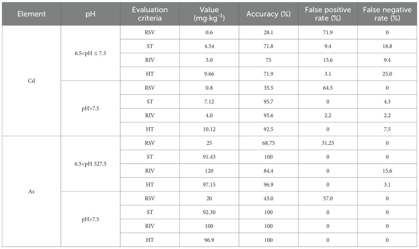 For As, the slightly lower HT–As than RIV–As reflects the increased bioavailability under alkaline conditions, a risk that our model successfully captures. The minimal difference between ST–As and HT–As further underscores that total As content is the paramount factor, a finding that echoes the site-specific nature of soil thresholds (Directive, 2003; Ding et al., 2018). The stark differences between our thresholds and those derived for other crops such as bananas further emphasize the necessity of crop-specific assessments (Pan et al., 2021).