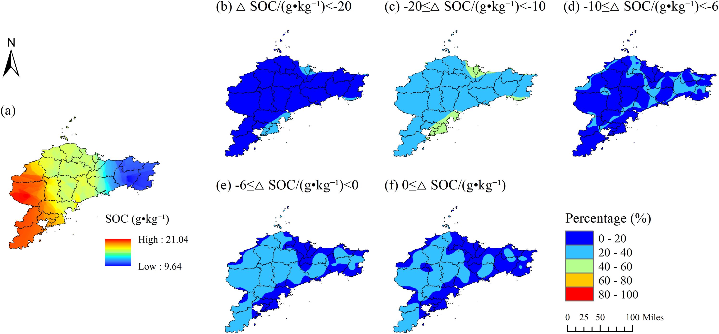 4.1 Spatial variability of SOC in the Jiaodong Peninsula and Southwestern Shandong Province