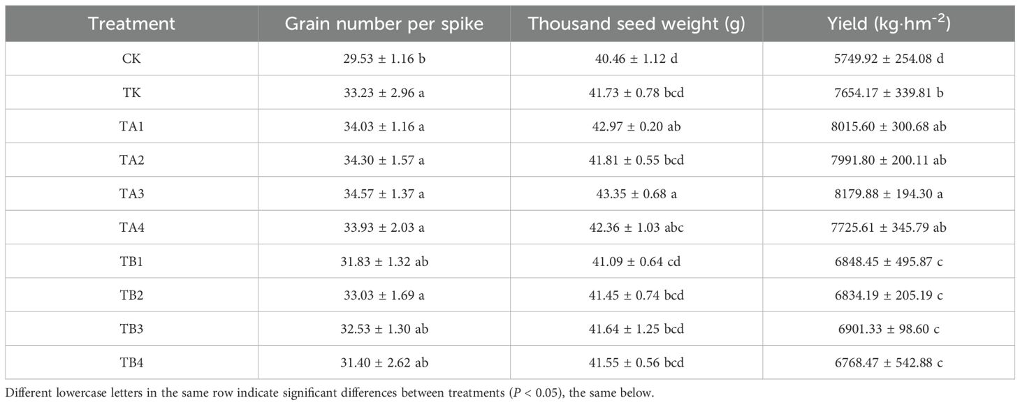 At wheat maturity, all grain spikes within a uniformly growing 5.0 m² area of each plot were harvested, air-dried under natural conditions, threshed, and weighed to calculate grain yield.