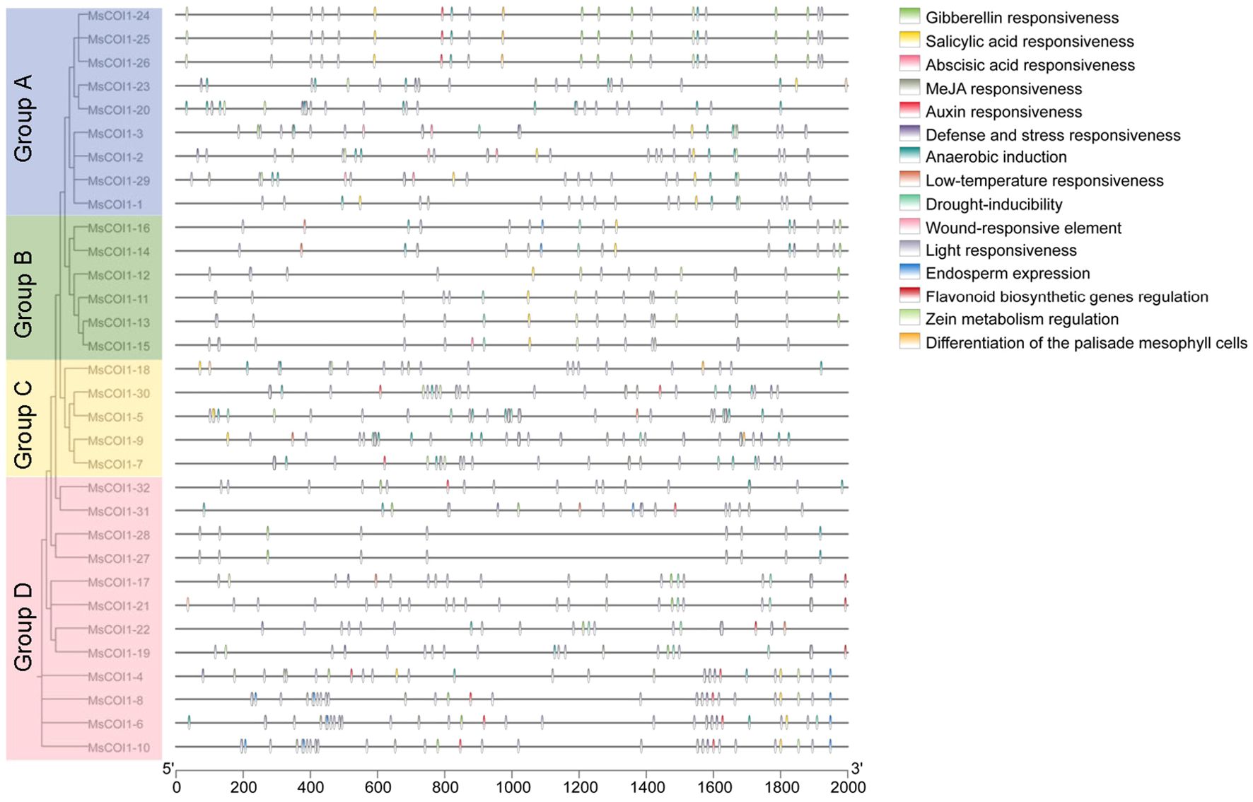 3.5 Analysis of cis-regulatory elements in the promoter regions of MsCOI1 genes