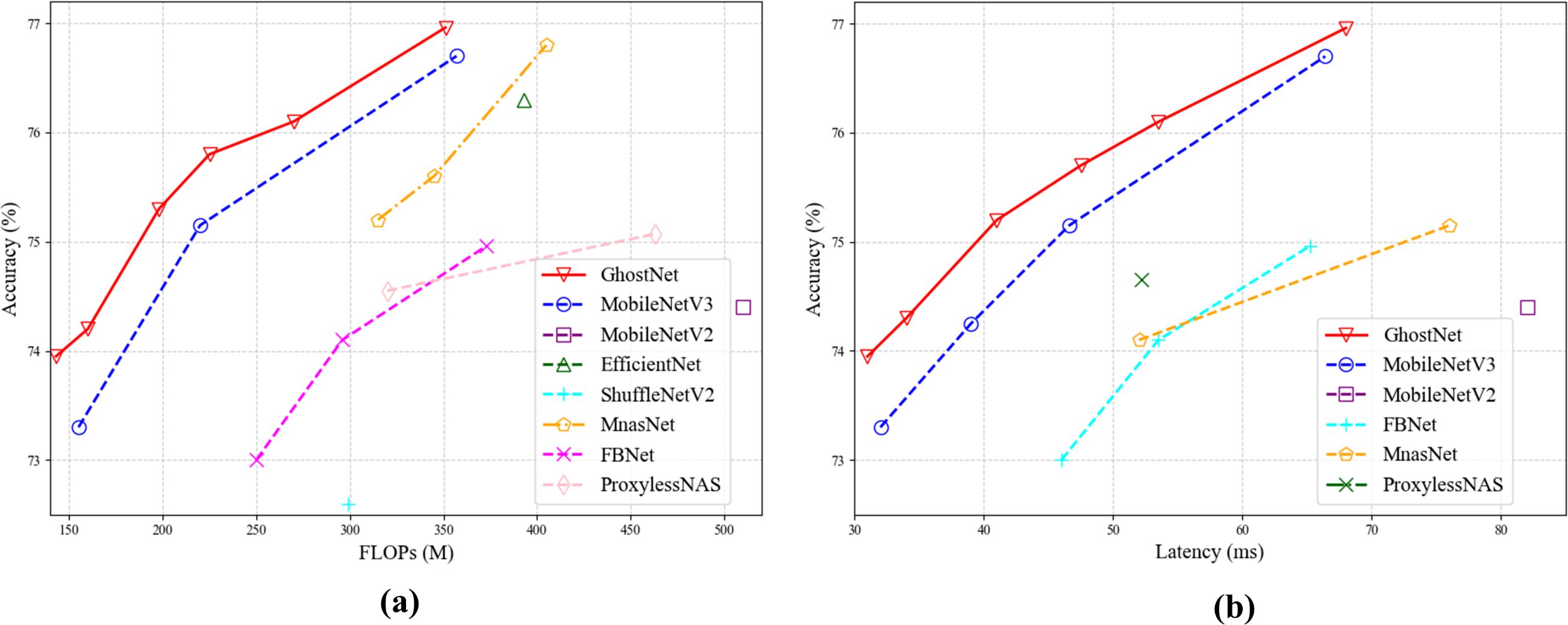 Figure 9. Comparison of lightweight models (a) Comparison of lightweight models in flops. (b) Comparison of lightweight models in latency.