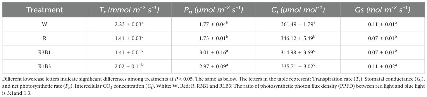 Table 3. Comparison of photosynthetic gas exchange parameters of P. szechuanica var. tibetica under different light quality.