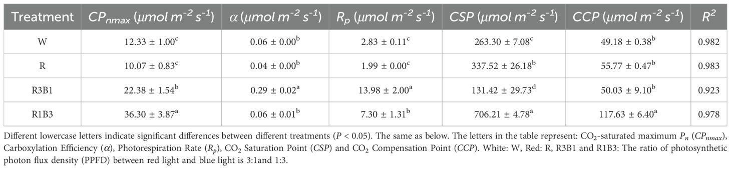 Table 5. Comparison of Pn-CO2 response parameters of P. szechuanica var. tibetica under different light quality.