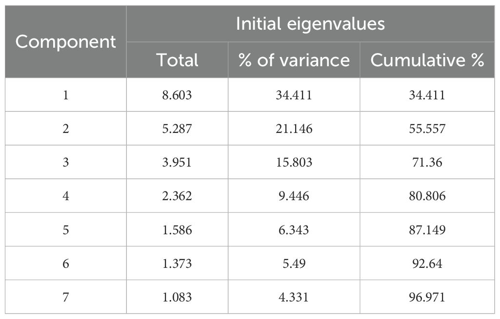 Given the multidimensional physiological and ecological responses to drought, no single trait can reliably represent drought resistance. Accordingly, we evaluated resistance using a suite of 25 indicators spanning structural, physiological, photosynthetic, hydraulic, and nutrient dimensions. All variables were first standardized by Z-score transformation to remove scale effects, and data suitability for dimension reduction was verified with Kaiser–Meyer–Olkin (KMO) and Bartlett’s tests. Principal component analysis (PCA) was then applied to identify the major orthogonal axes of trait covariation and to summarize species responses. To improve classification robustness and comparability across traits, we further employed fuzzy membership functions from fuzzy mathematics to map raw trait values to unitless membership scores in the range 0–1 (Poorter and Remkes, 1990), which were subsequently integrated to derive a comprehensive drought-resistance assessment.
