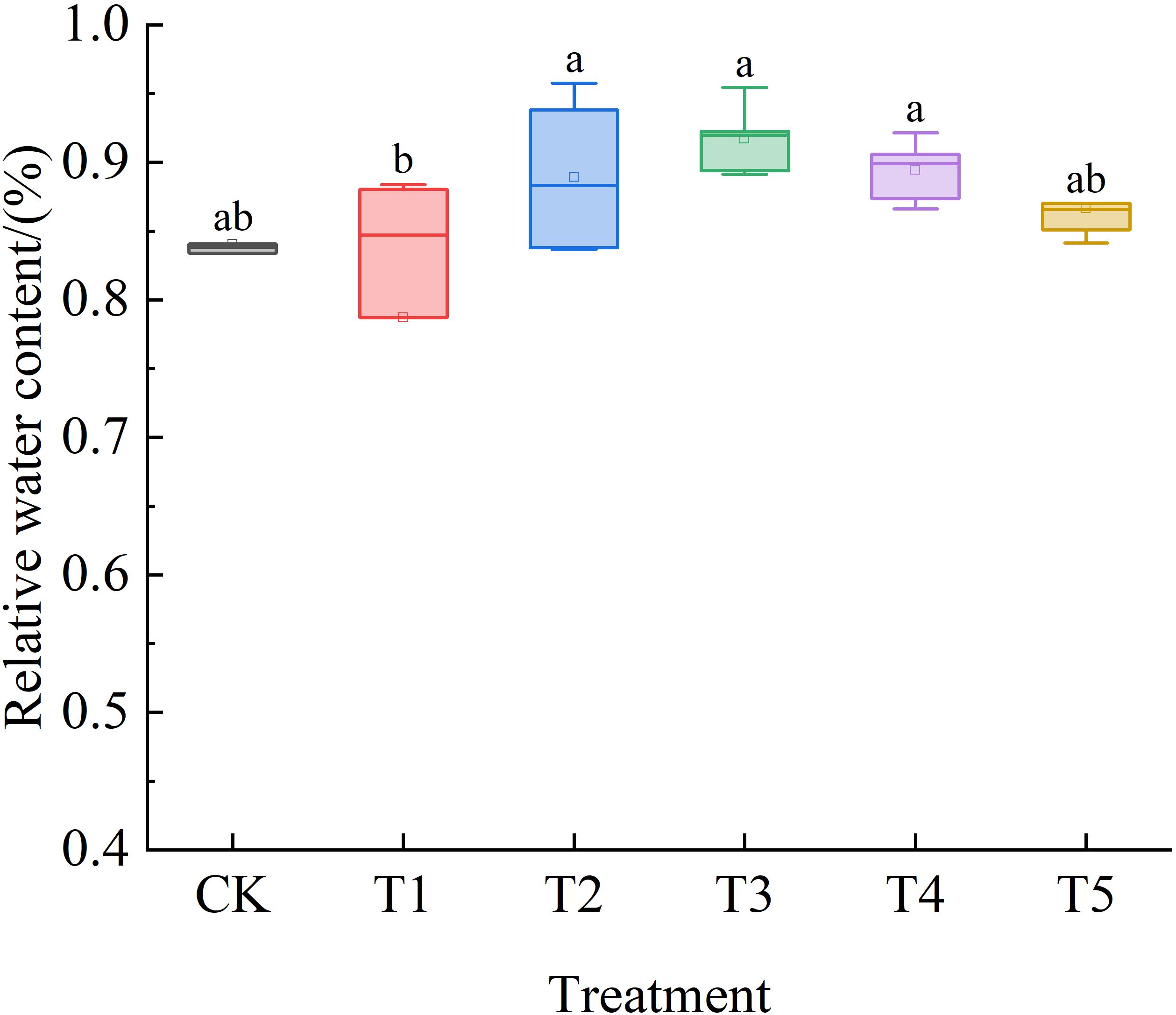 Leaf relative water content (RWC) was measured using the constant-weight oven-drying method according to established protocols (Zhang X, et al., 2025).The fresh weight (mf), turgid weight (mt), and dry weight (md) of leaf tissue were measured sequentially. The RWC was then calculated using the following formula: