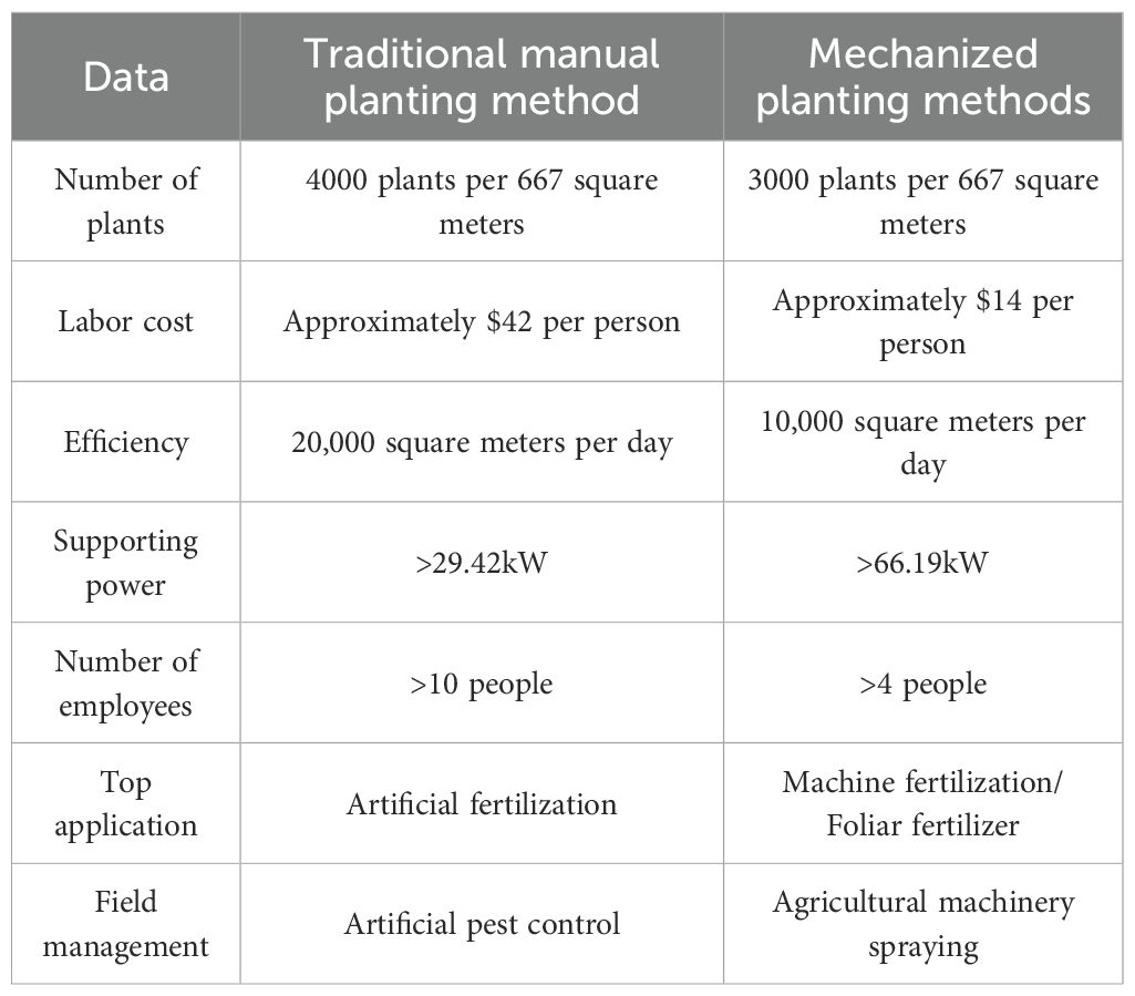 The combination of agricultural machinery and agronomy forms the foundation of mechanization. Only when both are developed in a coordinated manner can the functions of agricultural machinery and planting techniques be fully exerted (Jia, 2017). Currently, there are a wide variety of pineapple varieties in China, and the planting patterns in each pineapple-producing area are diverse. There is a lack of unified standards, which makes the mechanized field management and harvesting of pineapples quite challenging. Especially, the planting row spacing is too narrow, preventing machinery from entering the field for operations during the field management and harvesting processes of pineapples. To achieve mechanized pineapple production, based on the principle of combining machinery and agronomy, considering comprehensive economic benefits, and coordinating the research on mechanized technical ideas for pineapple planting, management, and harvesting, new suitable-machinable pineapple cultivation techniques should be developed (Cui et al., 2022).