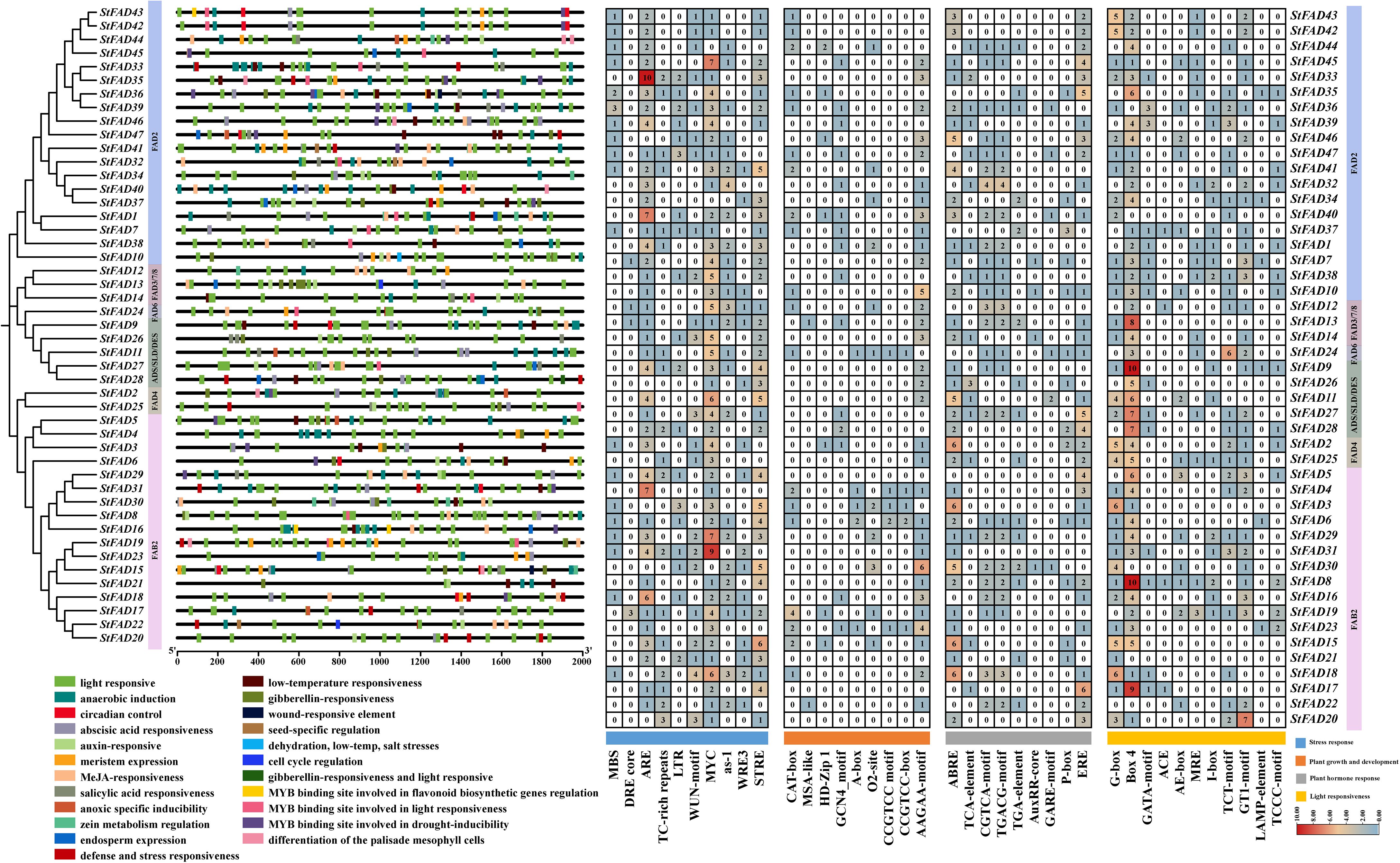 2.7 Cis-element analysis of promoter regions suggested that StFAD gene regulation is multifaceted