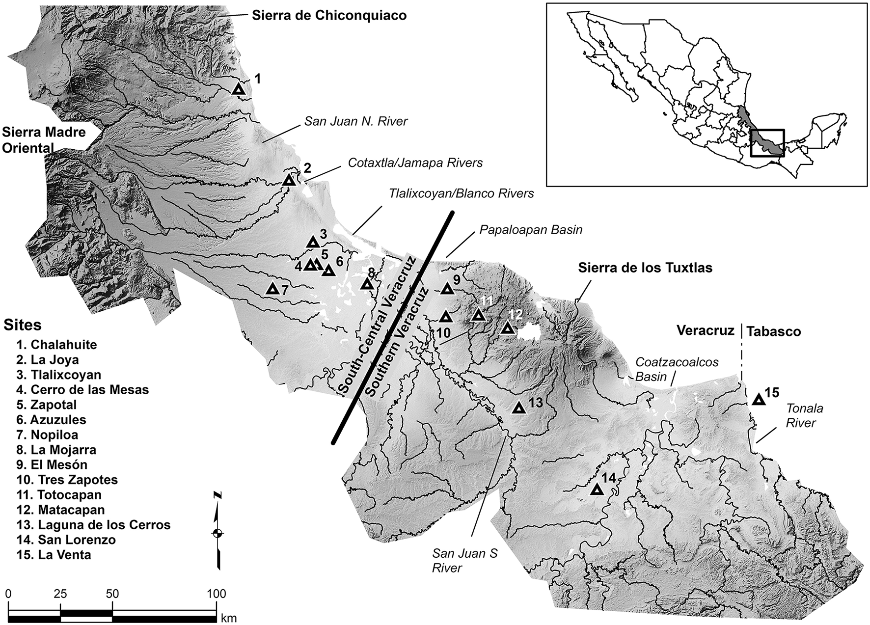 Initial cracks in the conceptual bias emphasizing rulers over the ruled came from the exploration of heterarchies instead of hierarchies (e.g., Ehrenreich et al., 1995) and factionalism (e.g., Brumfiel and Fox, 1994). Ideas about the coherence of states and their centralization of power were reexamined (e.g., Yoffee, 2005). An important thread in recent work is the recognition of variety in governance principles (or “strategies”). Another thread concerns tropical low-density urbanism. We bring these two recent subjects together in our Gulf lowland case study of mixed governance principles. We address the half of Veracruz south of the Sierra de Chiconquiaco (Figure 1), encompassing the south-central and southern areas traditionally separated by the Papaloapan River (Arnold and Pool, 2008:4). In the case study both autocratic and collective principles coexist and operate simultaneously in a widespread and relatively stable manner (see also Pool, 2010:100) and provide some points of contrast with low-density urbanism seen with the Classic Maya in Mesoamerica (e.g., Isendahl and Smith, 2013) and Khmer society in southeast Asia (e.g., Evans et al., 2007). There is more to ancient states than autocratic principles, which have been overrepresented in many traditional studies.