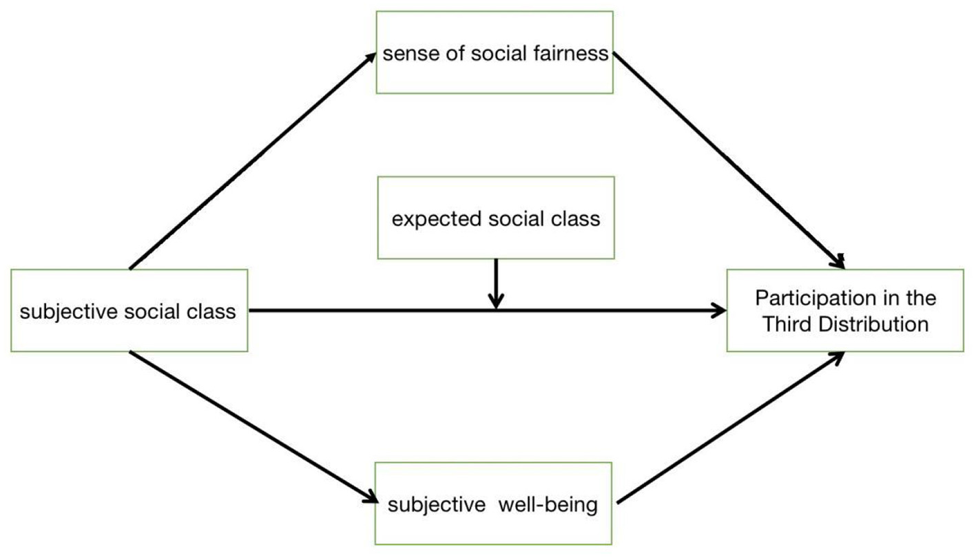 However, another view is that people in high class will exhibit more prosocial behavior. According to the “warming effect,” individuals tend to engage in prosocial behavior if they feel positive emotions through social comparison (Isen, 1970). Individuals who perceive themselves as superior in social comparisons will increase self-confidence and satisfaction, which leads to higher psychological resources and a greater willingness to pay attention to others' situations and needs, resulting in prosocial behavior. Individuals often use subjective social class as the dimension of social comparison, while prosocial behavior is costly and consumes its own resources (Dovidio et al., 2012; Guo et al., 2015), and compared to lower social classes, higher social classes are less constrained by work and life stress (Wilson and Musick, 1997) and have more time and money to engage in prosocial activities. For instance, participation in the Third Distribution such as charitable giving and volunteering, requires time and money. Therefore, such academic views are more in line with the context in this paper: subjective social class influences attitudes to participate in the Third Distribution.