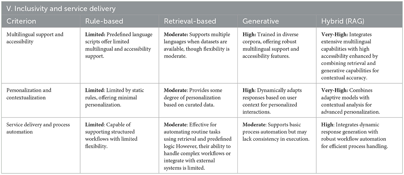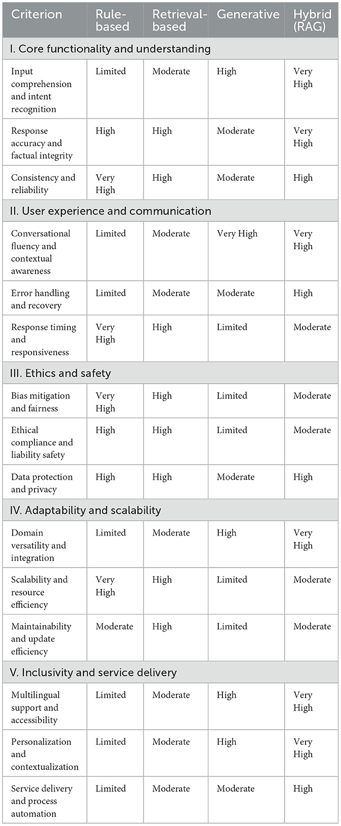 4.4 Criteria for evaluating chatbot architectures in public service delivery