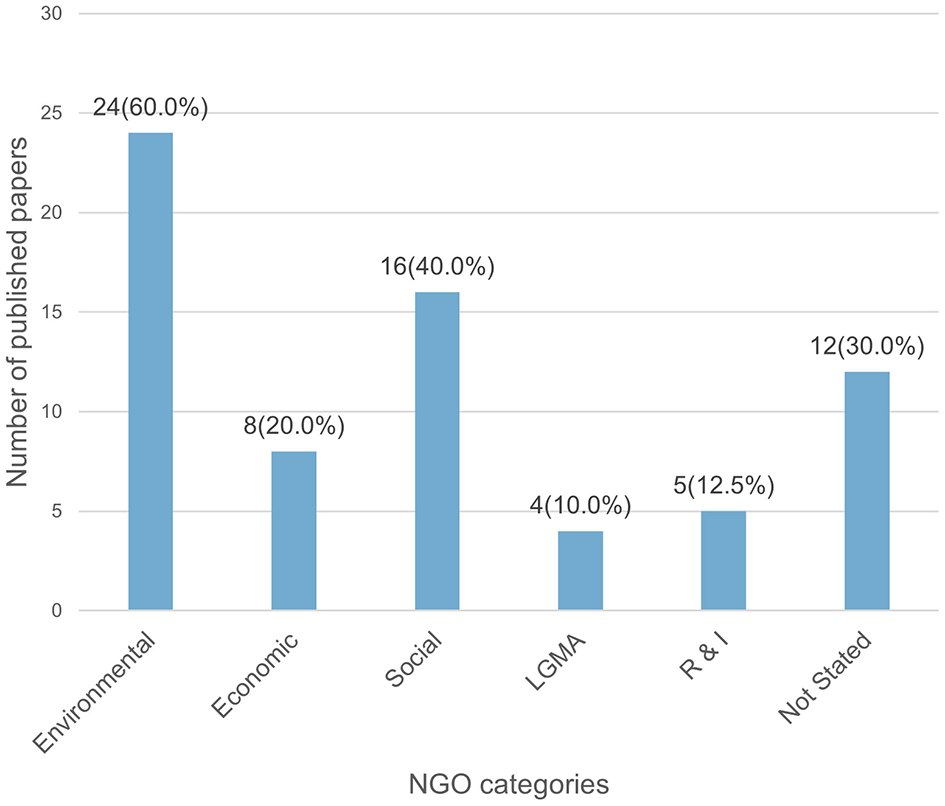 By answering these two questions, this study offers a synthesis of (1) the research trends, including publication patterns, theoretical frameworks and research designs; and (2) NGO engagement, encompassing categories, roles, strategies and determining factors.