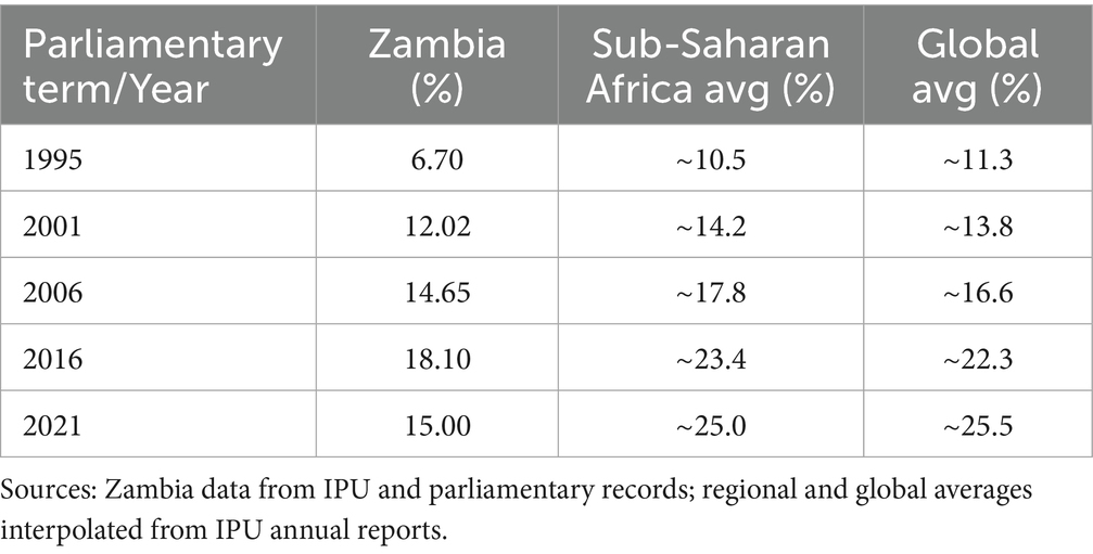 The results were derived through thematic analysis, enabling a structured synthesis of findings that reflect the interplay between global commitments and local governance realities. This approach contributes meaningfully to both scholarly discourse and policy development by distilling patterns that reflect systemic gaps and opportunities for reform. In addition to thematic synthesis of qualitative data, descriptive statistical analysis was applied to quantitative datasets obtained from IPU and Zambia Parliamentary records. This allowed the study to illustrate shifts in women’s representation across time, providing an empirical foundation for interpreting patterns alongside qualitative findings.