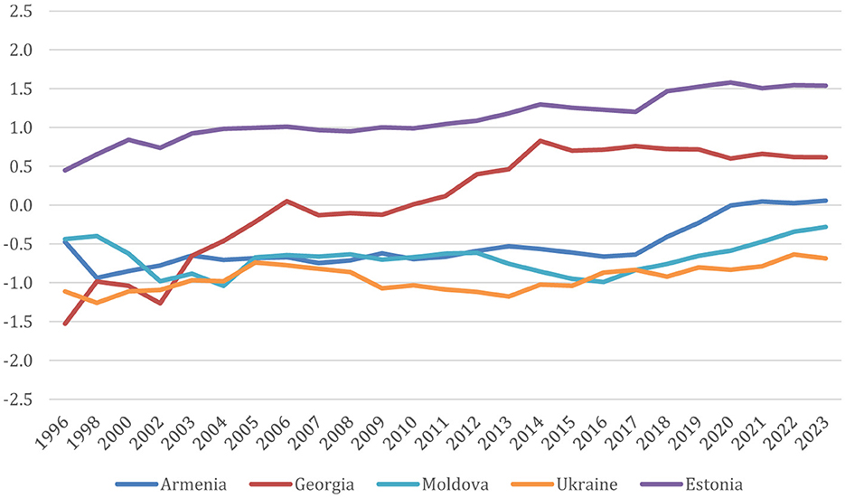 Figure 3. World Bank world governance indicators control of corruption (−2.5 to 2.5 no corruption). Source: https://databank.worldbank.org/source/worldwide-governance-indicators#.